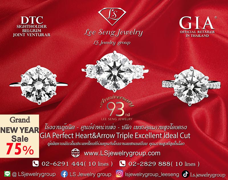 ห้างเพชรหลีเสง (L.S. Jewelry Group) โรงงานผู้ผลิต - ศูนย์จำหน่ายส่ง - ปลีก - ส่งออก เพชรแท้ธรรมชาติ (Natural Diamond) คุณภาพสูงสุด (Perfect Heart&Arrow Ideal Cut)ซึ่งเปิดมานานกว่า 93 ปี
